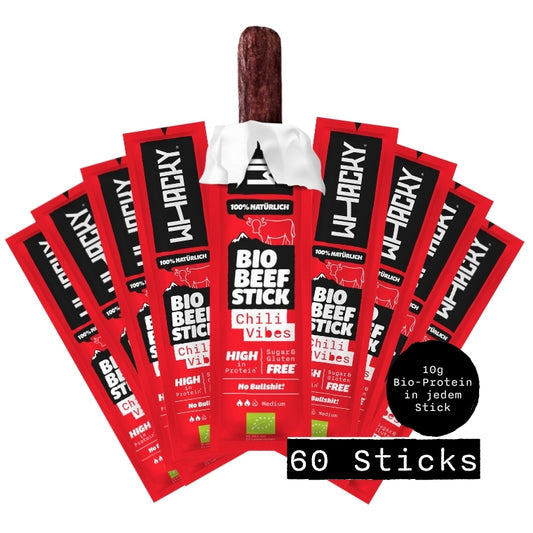 46 reviewsAusverkauftNormaler Preis 82.13 CHFNormaler PreisStückpreis CHF 8.56 per pro 100gCHF 97.74Verkaufspreis 82.13 -15%CHF 8.56 per 100g inkl. 7% MwSt. (DE), die landesspezifische MwSt. & Versand wird beim Kaufvorgang berechnetSaleBio Beef Sticks Chili Vibes 60x 32g