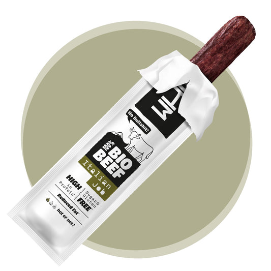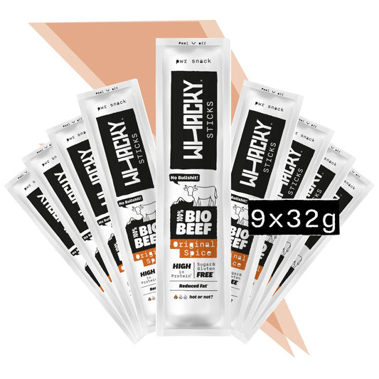 Die leckeren Bio Beef Sticks von Whacky mit 100% natürlichen Zutaten.