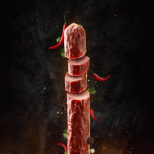 Leicht zu transportieren, ungekühlt haltbar und voller Geschmack – luftgetrocknetes Fleisch für echte Performance.